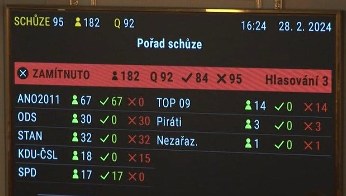 Další ránu férové debatě o migračním paktu zasadili 28.3.2024 koaliční poslanci, kteří neschválili program mimořádné schůze a sněmovna tedy o migračním paktu nebude jednat a vláda se tak pravděpodobně na Evropské radě jen zdrží hlasování. Nenašel se jediný poslanec pětikoalice, který by měl zájem o debatu, v níž by se ukázalo, co je skutečný obsah paktu a jaký ďábel se skrývá v detailu.