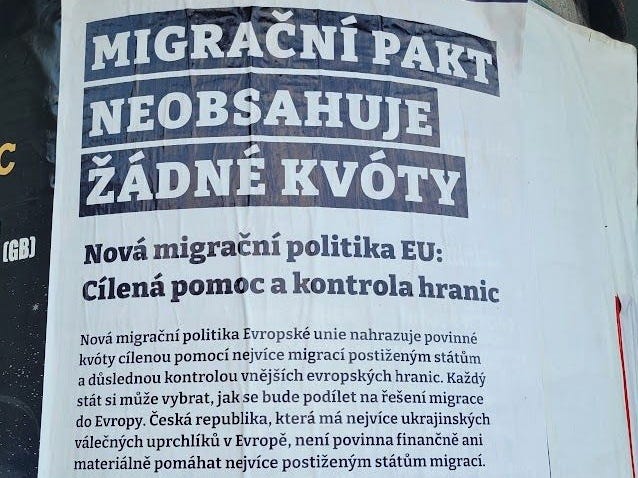 1. Migrační pakt obsahuje nejen de facto kvóty ve smyslu, že za každého nepřijatého migranta budeme muset zaplatit 20 tisíc eur (to je řádově vyšší částka, než nám EU přispívá na ukrajinské uprchlíky), ale i de iure kvóty, protože při velkém migračním náporu se už nebudeme moci nijak vyplatit. Komise chce každý rok rozdělovat nejméně 30 tisíc žadatelů, ale představme si, že migrační vlna dosáhne třeba trojnásobku. Kvóty budou opravdu povinné, "pokud přislíbené relokace nedosáhnou 60 % celkových potřeb určených Radou pro daný rok nebo nedosáhnou počtu stanoveného v nařízení (nyní 30 000).”